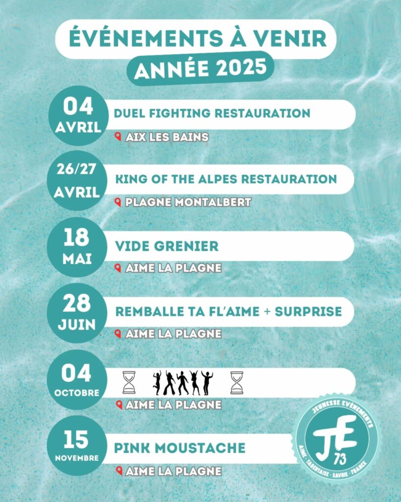 JE73 (Jeunesse Événements 73) est une association créée en 2016 ayant pour principal objectif de proposer des événements originaux dans la vallée de Tarentaise.